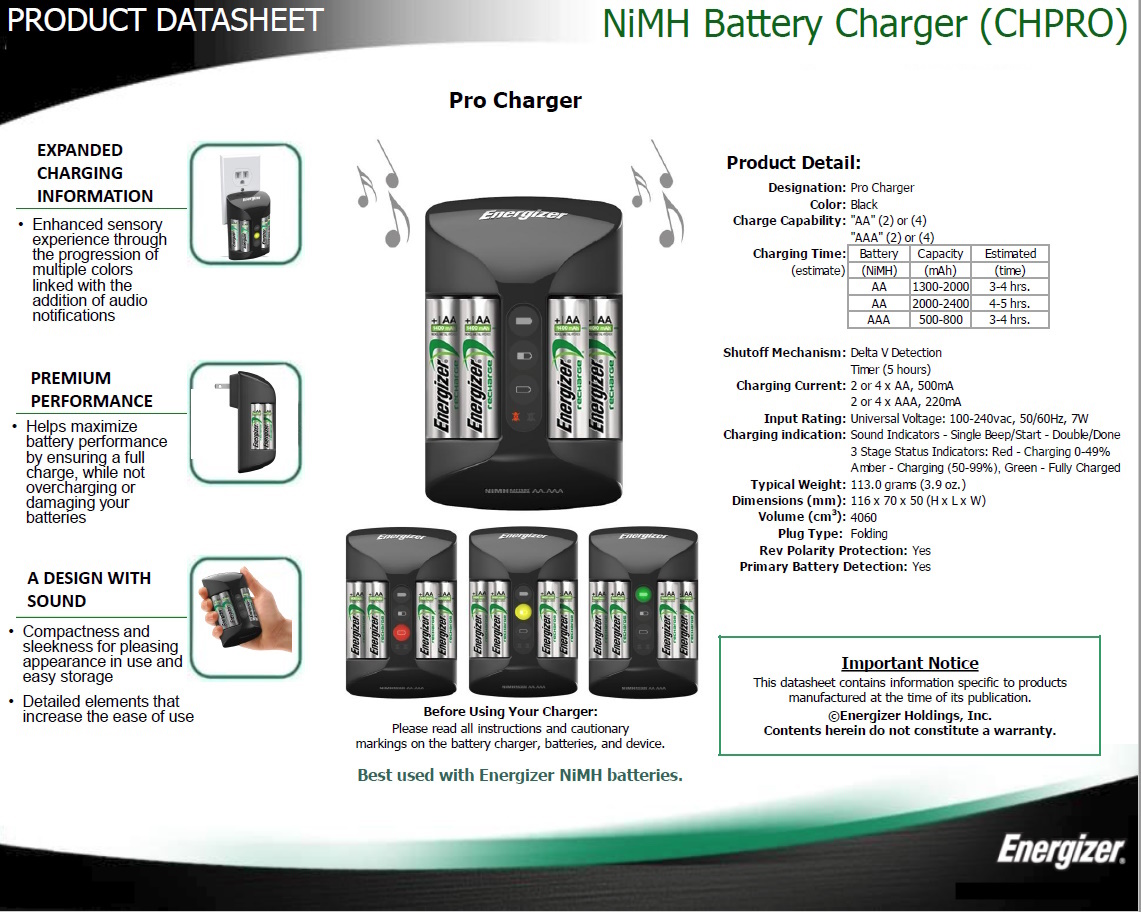 Energizer Pro Recharge Base with 4 Batteries [1348]